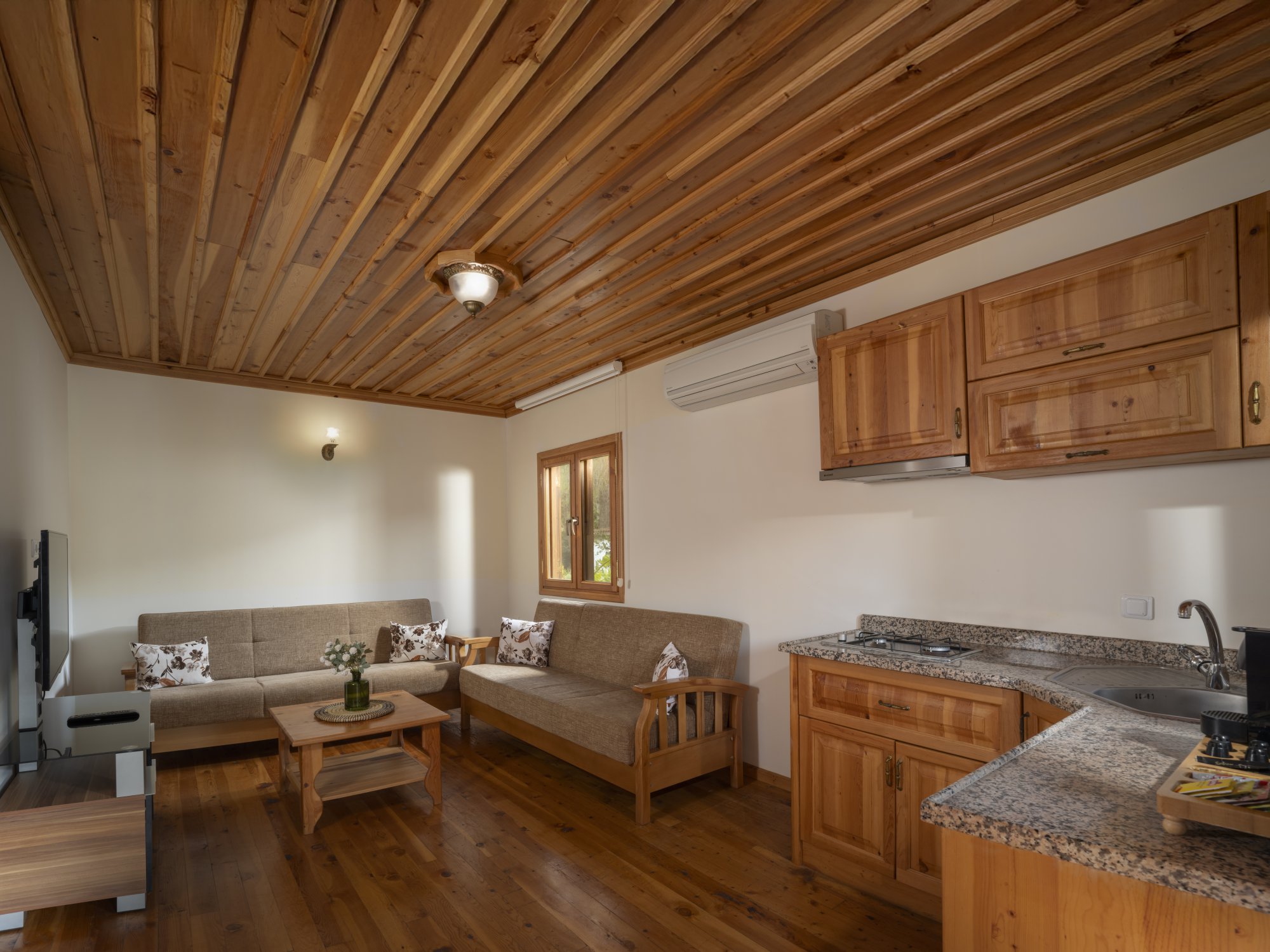 Ahşap bungalovlarımız ise doğayla iç içe bir deneyim arayan misafirler için idealdir; sıcak ve samimi bir atmosferde, Akdeniz’in huzurunu hissedebilirsiniz. Tüm odalarımızın mimarisi ve tasarımı, doğayla uyumlu bir şekilde konforu ön planda tutar ve tatilinizi sakin, keyifli ve unutulmaz kılar.